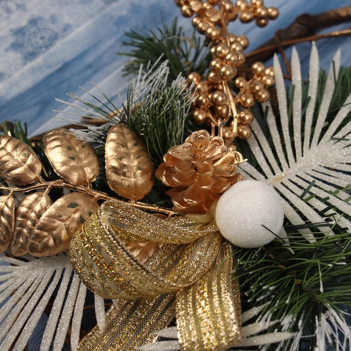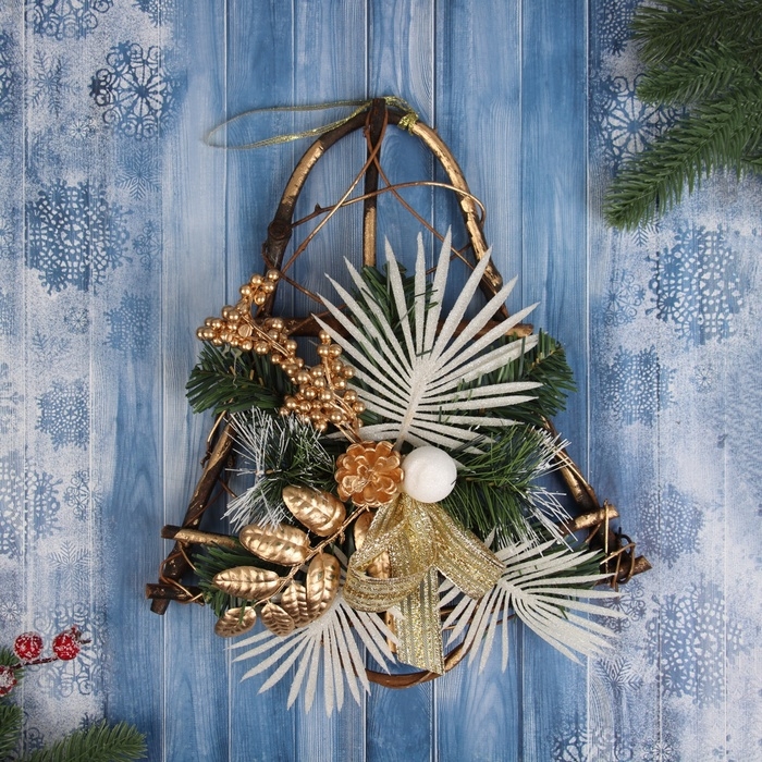 Украшение ёлочное "Ветка ажурная на колокольчике" 31х26 см