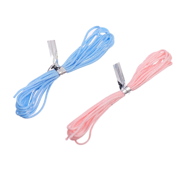 - Проденьте верёвочки в отверстия изделий. Нанизывайте бусины на верёвочки в том порядке, в каком захотите. В конце завяжите края верёвочек на двойной крепкий узелок.