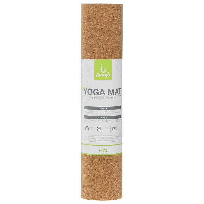 Коврик для йоги Sangh, 183х61х0,6 см, цвет бежевый/коричневый