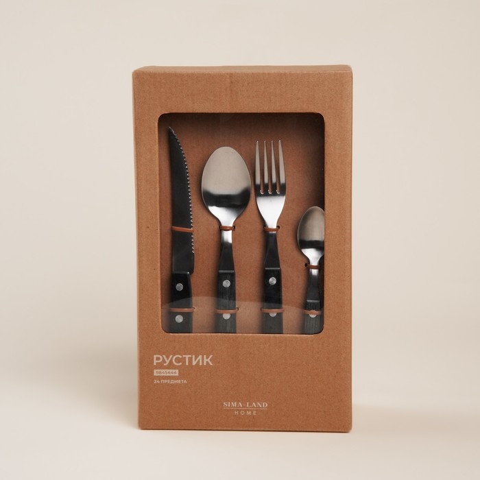 Набор столовых приборов из нержавеющей стали SL Home, 24 предмета, цвет серебряный, цвет ручки коричневый