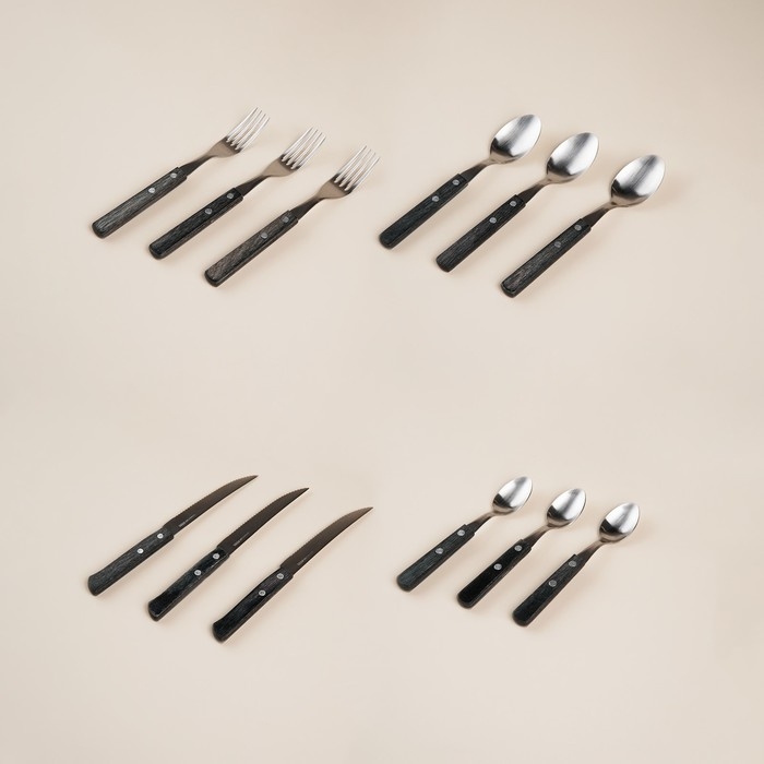 Столовые приборы из нержавеющей стали Magistro, 24 предмета, на 6 персон, цвет чёрный