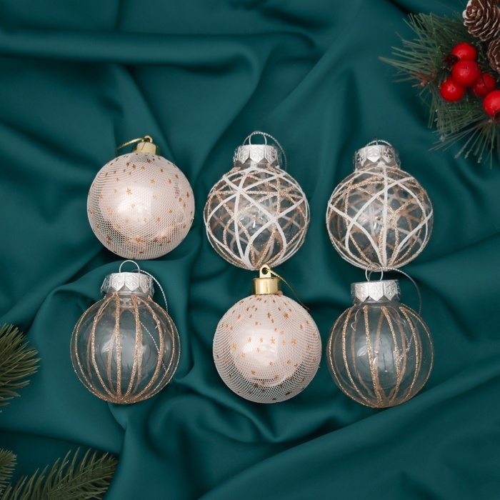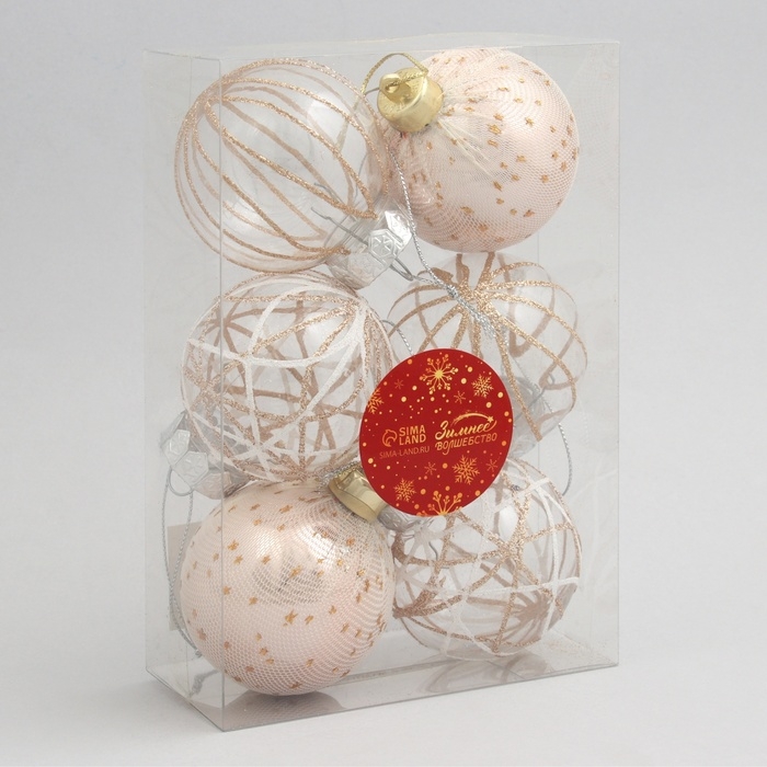 Набор шаров пластик d-6 см, 6 шт "Зимняя долина" бежевый
