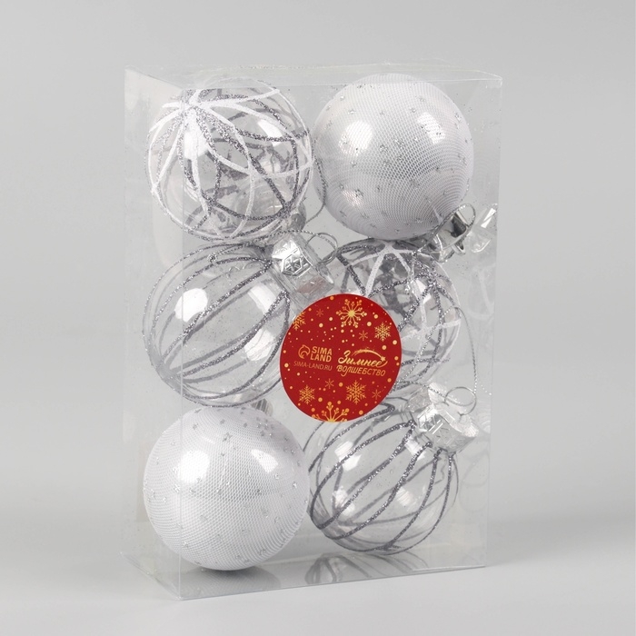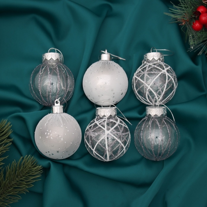Набор шаров пластик d-6 см, 6 шт "Зимняя долина" серебро