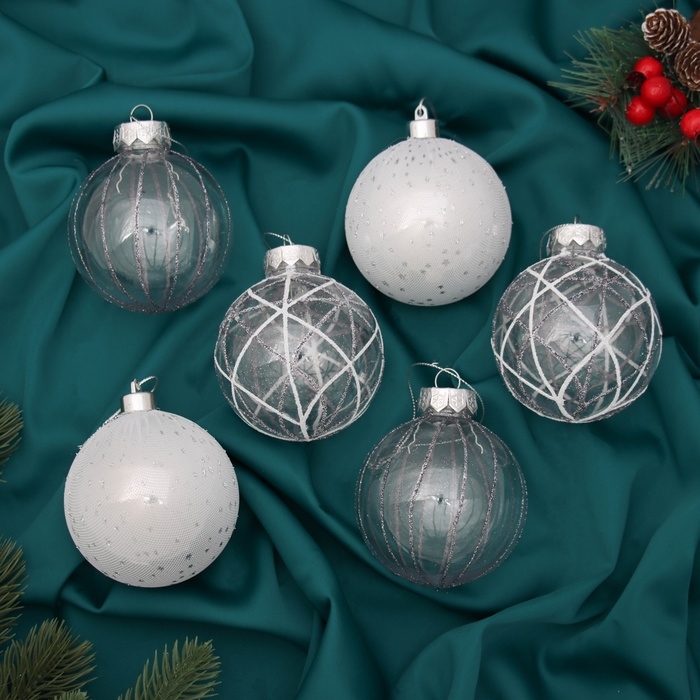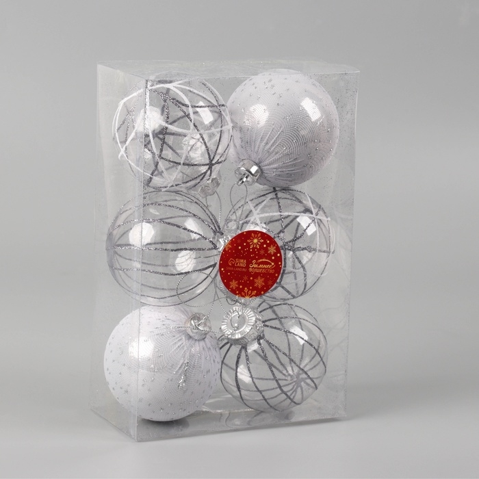 Набор шаров пластик d-8 см, 6 шт "Зимняя долина" серебро