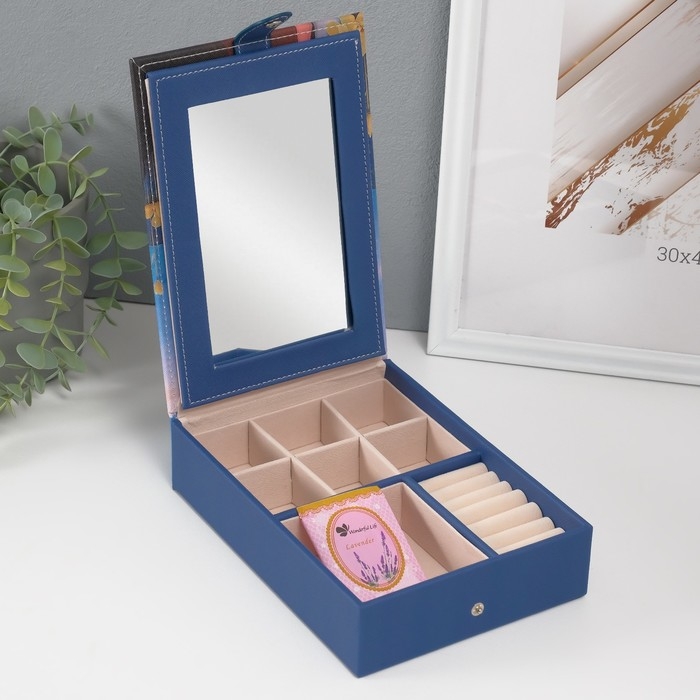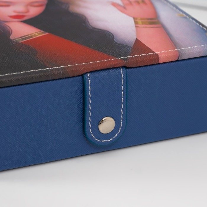 Шкатулка кожзам для украшений с зеркалом "Девушка с хаски" 15х21,5х5,5 см