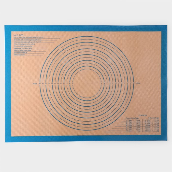 Армированный коврик с разметкой, силикон, 71×50,5 см, цвет синий
