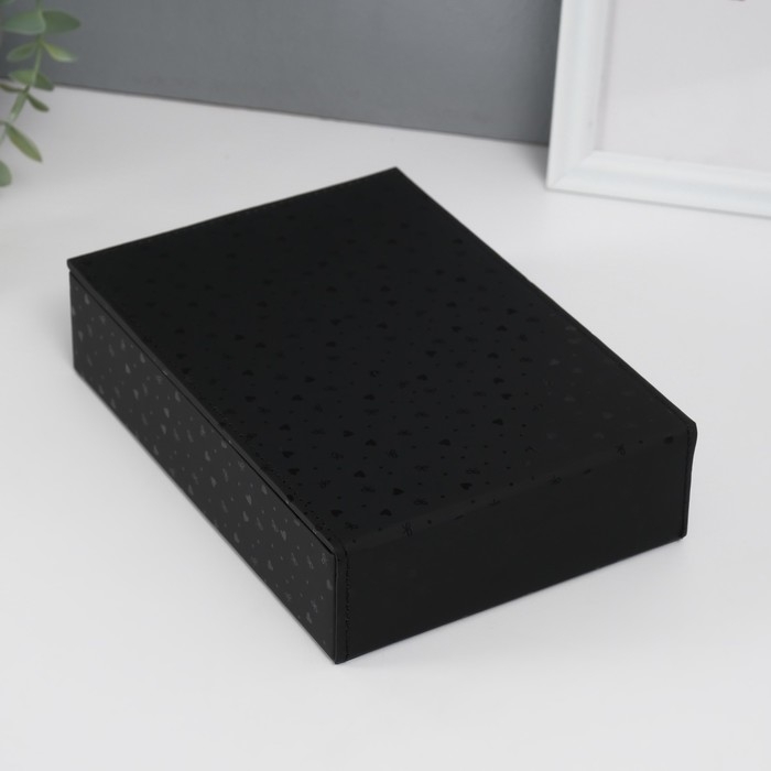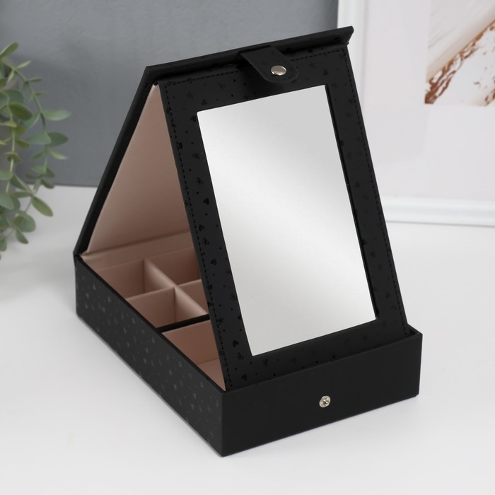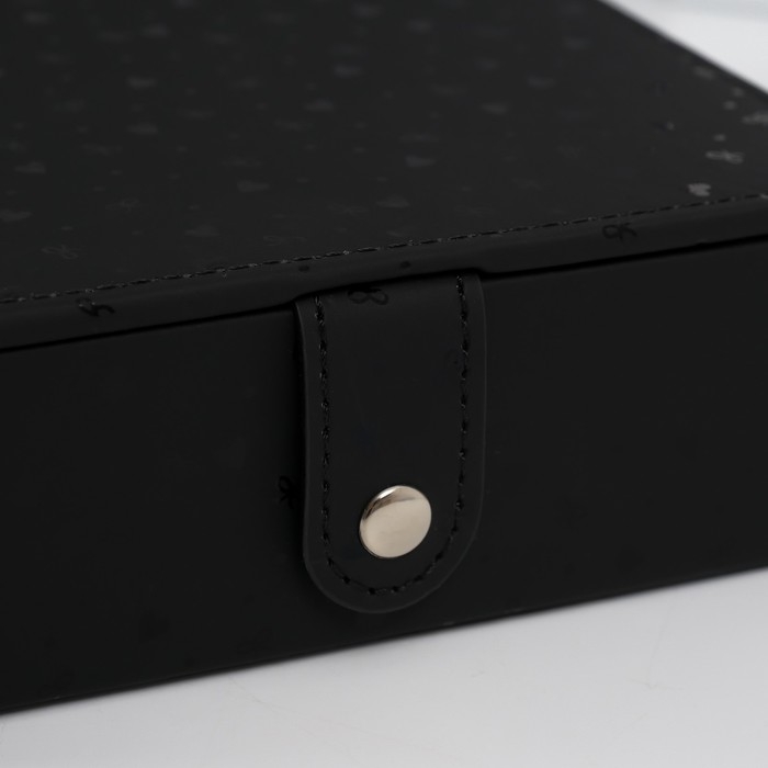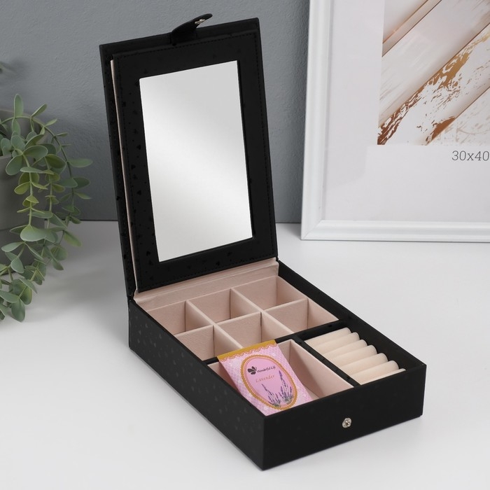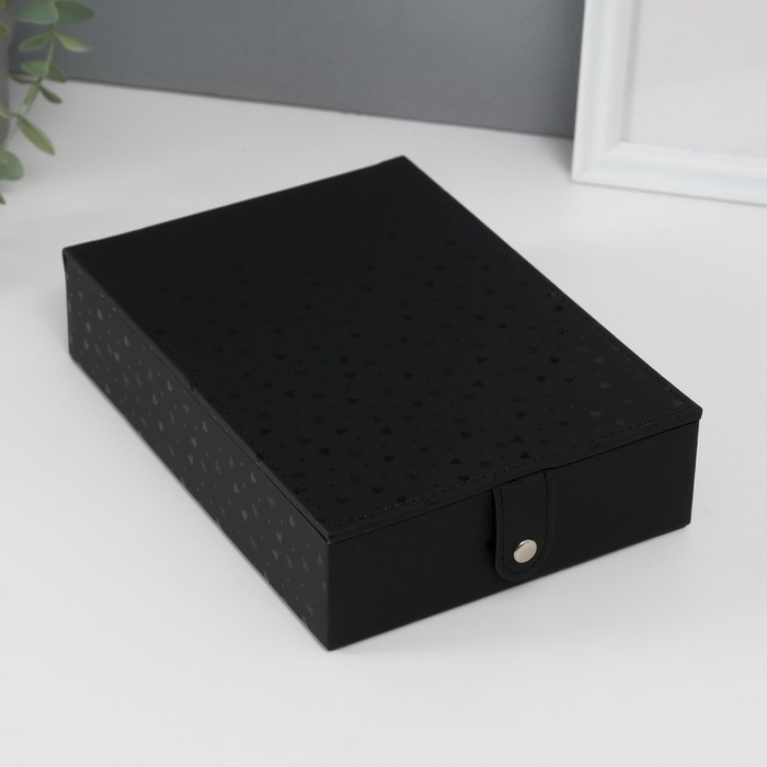 Шкатулка кожзам для украшений с зеркалом "Сердечки" чёрная матовая тиснение 15х21,5х5,5 см 1052445