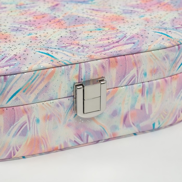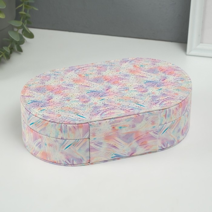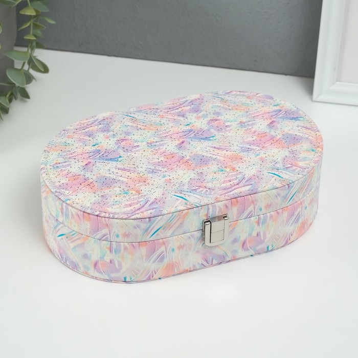 Шкатулка кожзам для украшений "Мазки краски" серебристые точки сирень 13,5х22,5х6,5 см