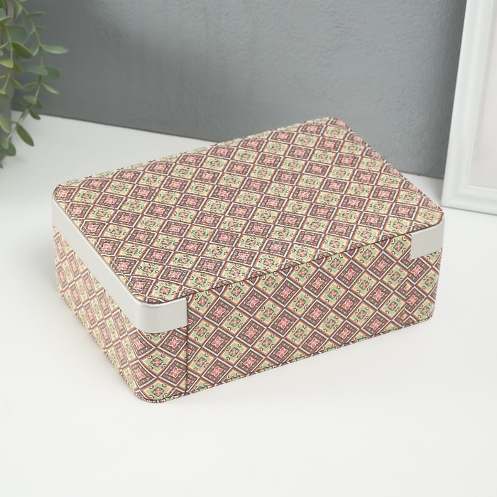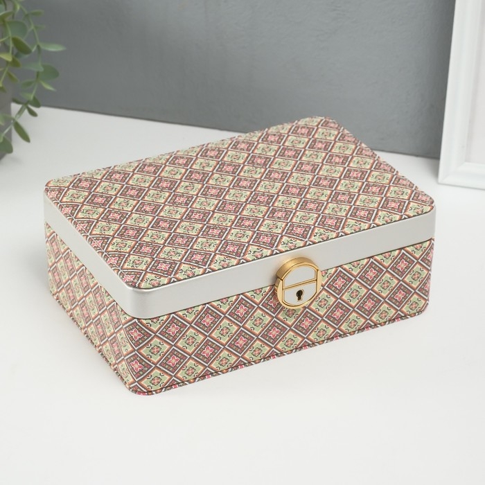 Шкатулка кожзам для украшений "Мозаика из плитки" зелёная 16,3х24х8,5 см