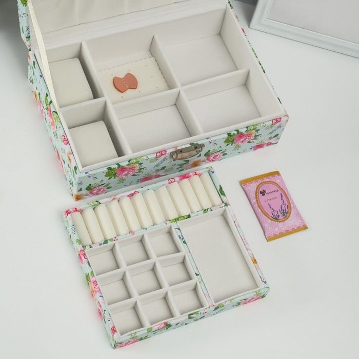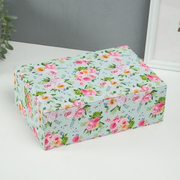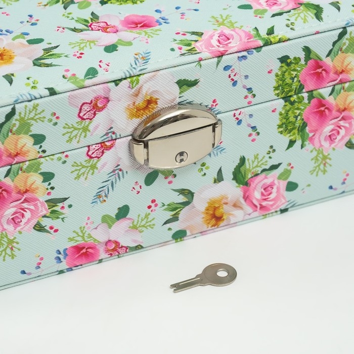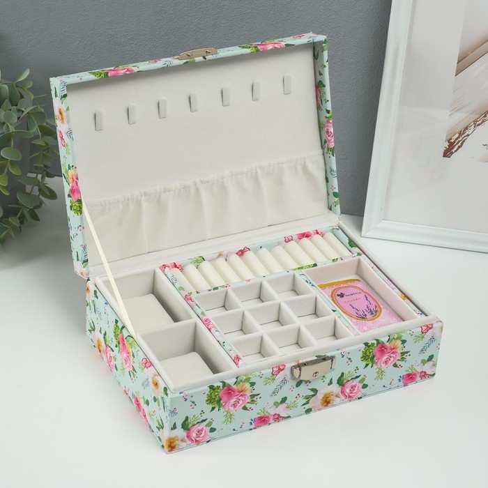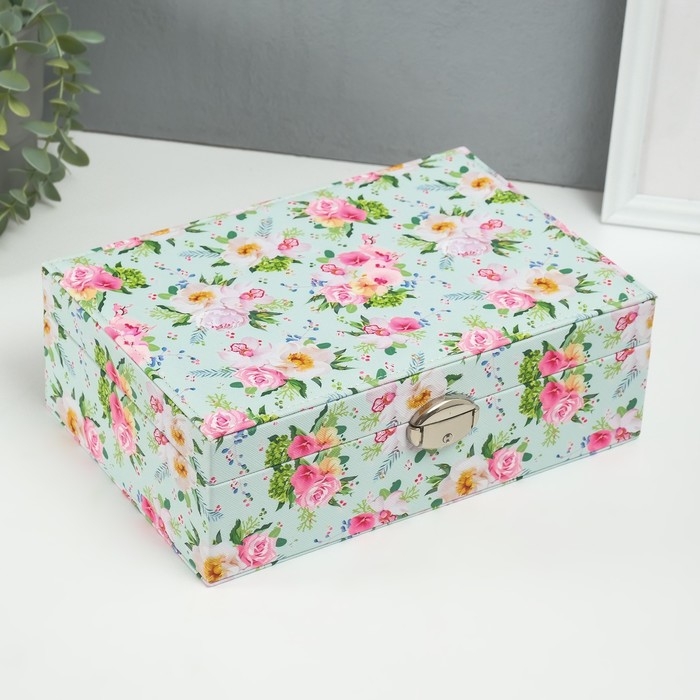 Шкатулка кожзам для украшений "Розы на зелёном" 18х27х9 см