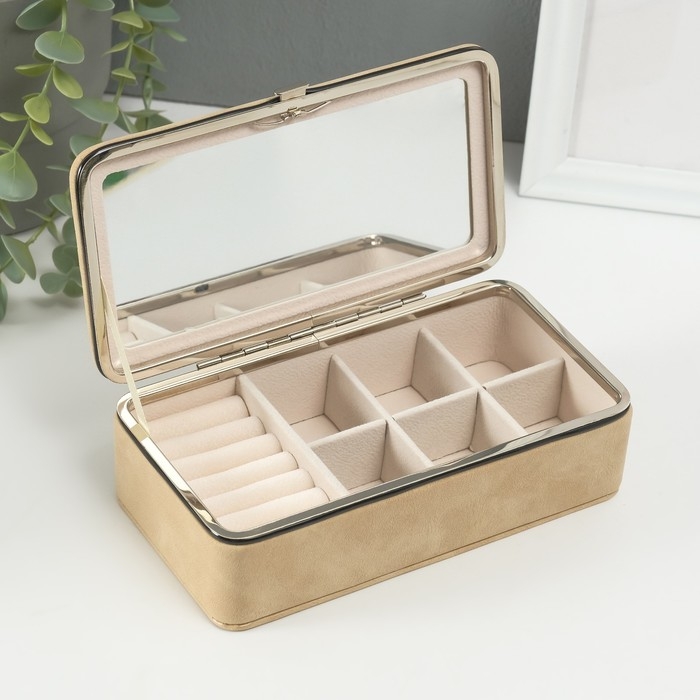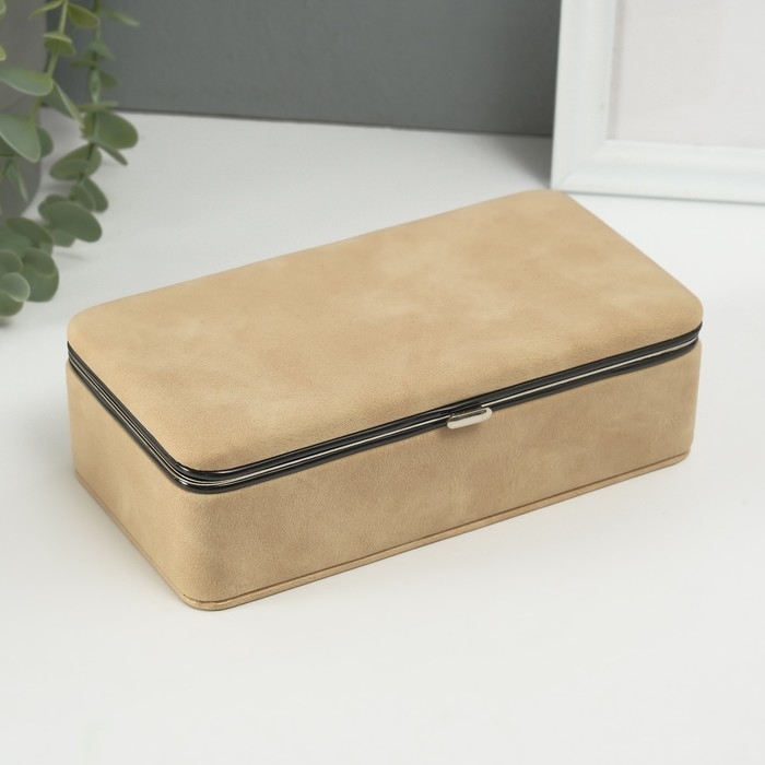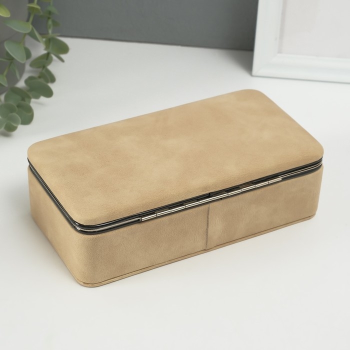 Шкатулка кожзам для украшений "Бархатная кожа" песочная 10х18х6 см