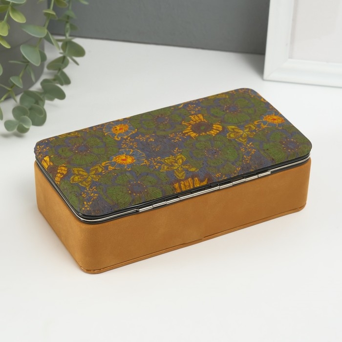Шкатулка кожзам для украшений "Подсолнухи" пробка 10х18х6 см