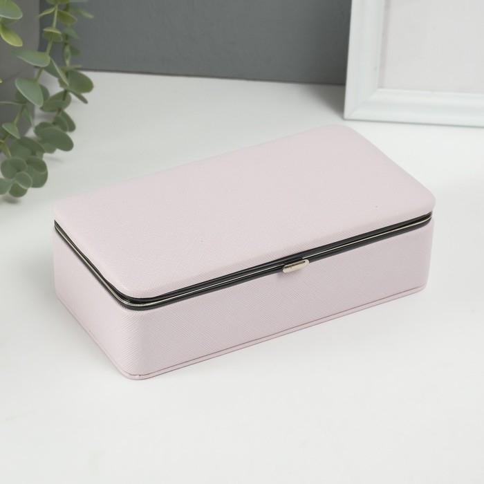 Шкатулка кожзам для украшений "Мелкая рябь" бледно розовая 10х18х6 см