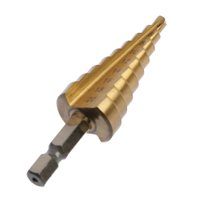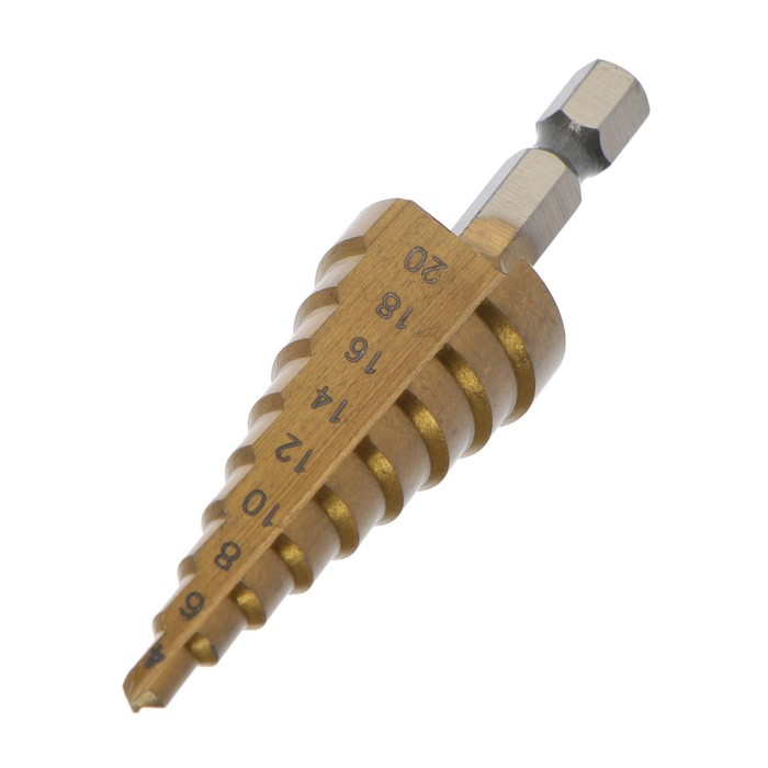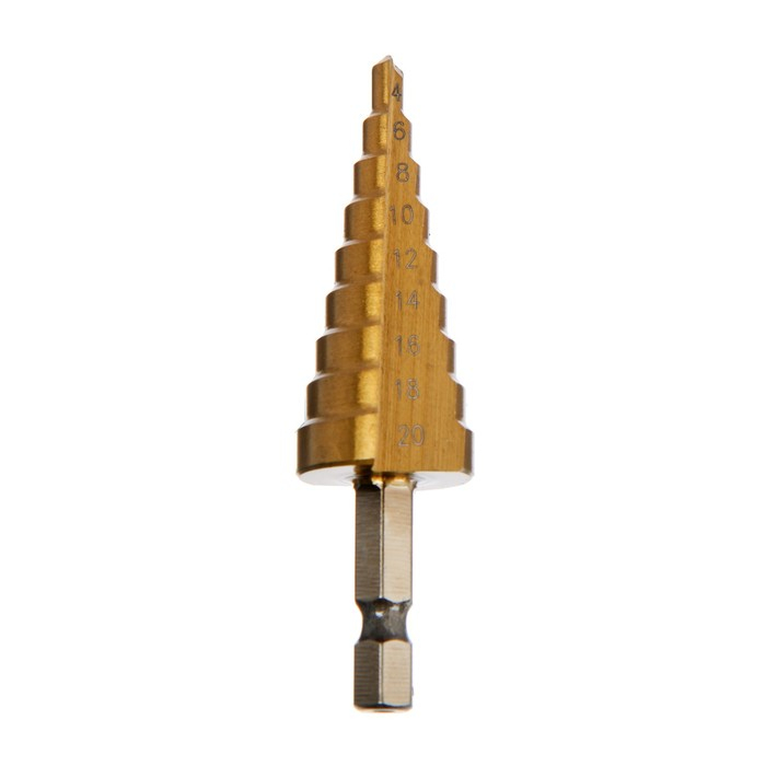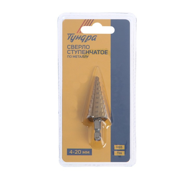 Сверло ступенчатое ТУНДРА, HSS, TiN, шестигранный хвостовик, 4 - 20 мм