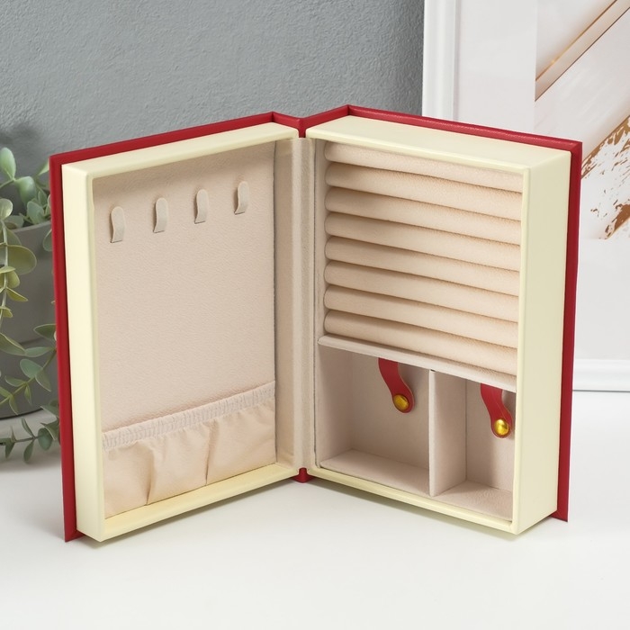 Шкатулка кожзам для украшений "Магическая книга" красная 15,5х21,5х7 см