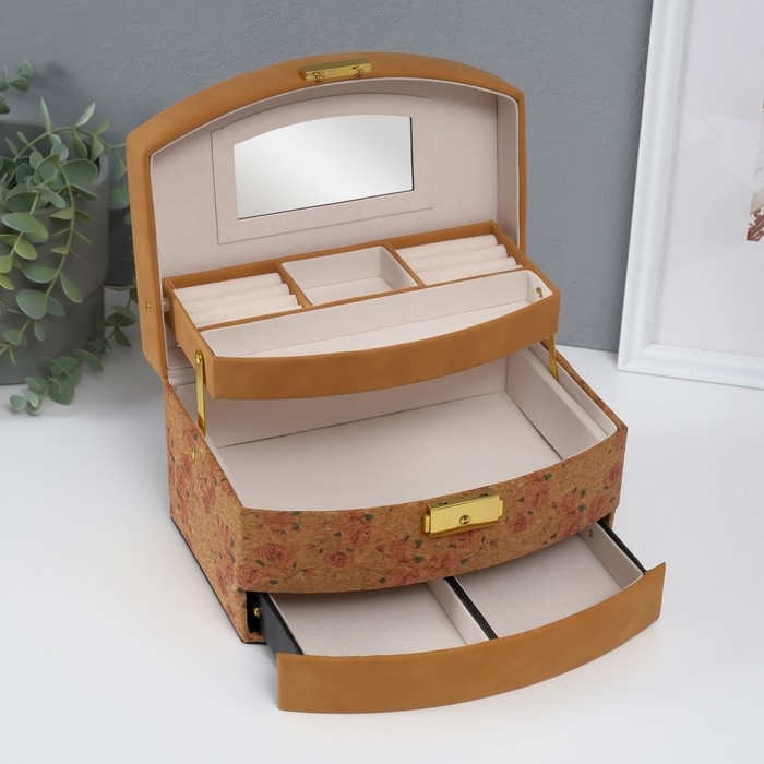 Шкатулка кожзам для украшений "Нежные розы" пробка 16,5х22,5х13,5 см