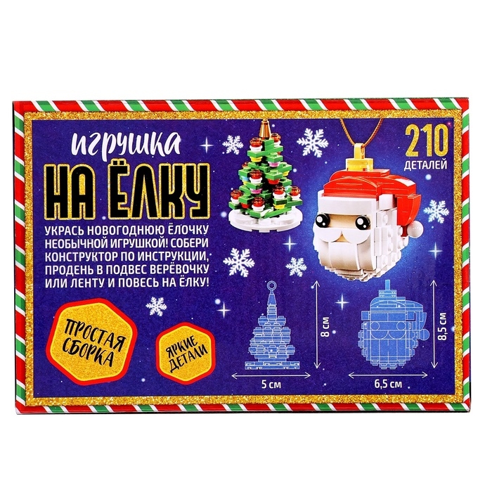 Конструктор новогодний «Игрушка на елку. Дед Мороз и елочка», 210 деталей, 6+