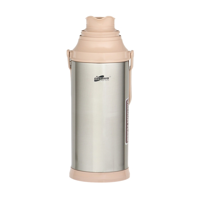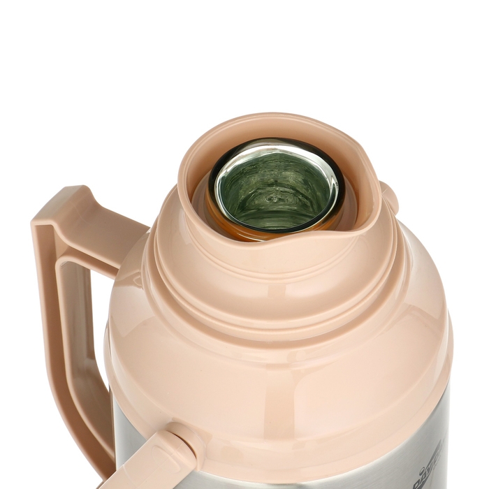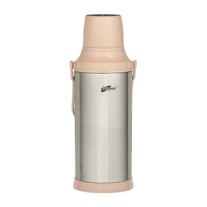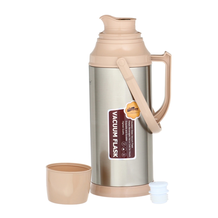 Термос 2 л, со стеклянной колбой, сохраняет тепло 12 ч, с кружкой, бежевый