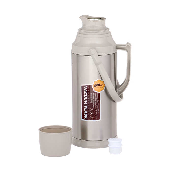 Термос 2 л, со стеклянной колбой, сохраняет тепло 12 ч, с кружкой, серый