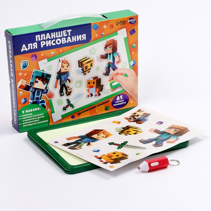 Рисование светом. Набор для рисования в темноте «Игровой мир», зелёный, А5