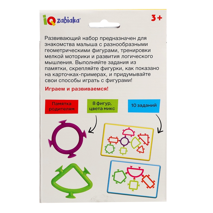Развивающий набор «Фигуры-липучки», 10 заданий, 8 фигур, 3+