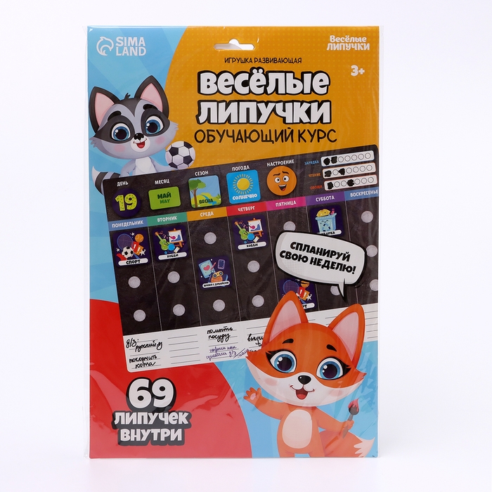 Игрушка на липучках — это развивающая игра, созданная специально для малышей. Набор включает в себя основу с полями и 69 деталей, которые помогут ребёнку планировать свои дни.