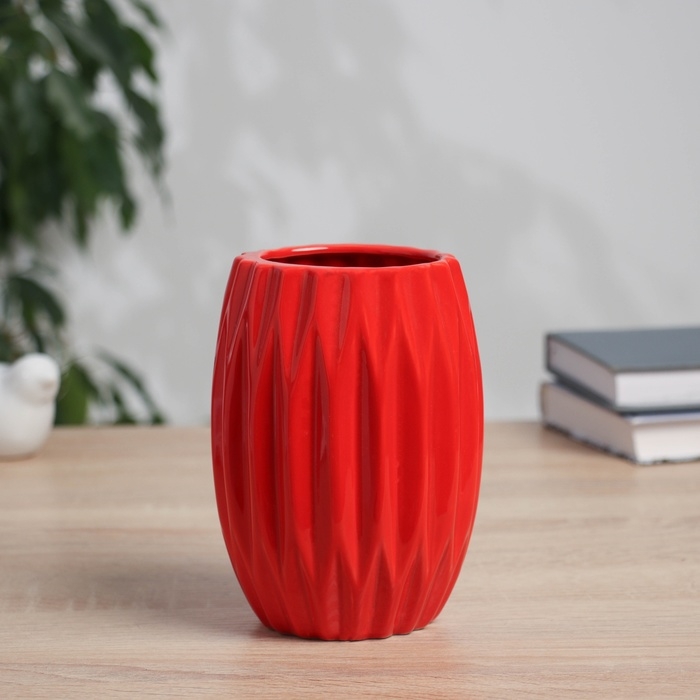 Ваза керамика настольная "Тьяго" грани, 14х9,5 см, красный
