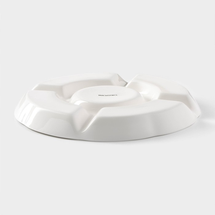 Менажница фарфоровая Magistro «Бланш» — это стильный и функциональный предмет посуды, который станет отличным дополнением к вашему столу. Менажница вмещает несколько ячеек, в которые можно положить различные закуски, фрукты, мясные деликатесы, орехи и другие продукты.