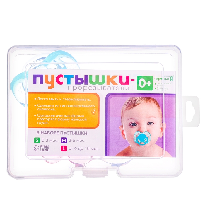 Набор прорезывателей, пищевой силикон, в контейнере, 3 пустышки