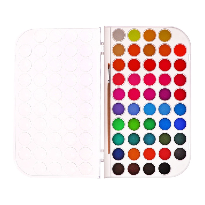 Краски акварельные, 50 цветов в кюветах, в коробке, с кистью