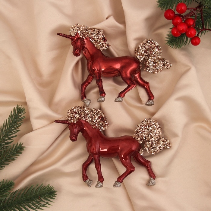 Украшение ёлочное "Лошадка Феерия" (набор 2 шт) 11х15,5 см, красный