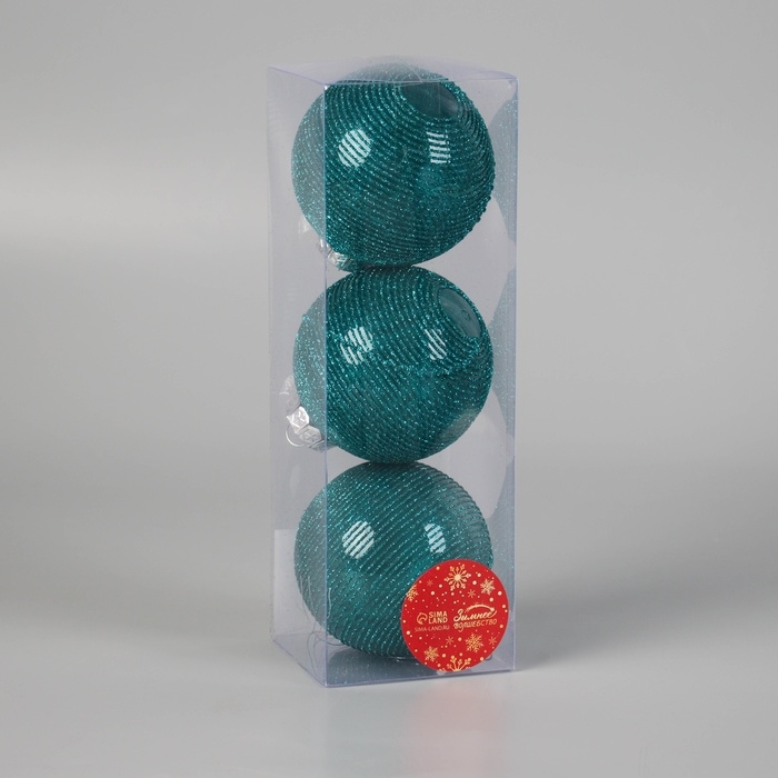 Набор шаров пластик d-8 см, 3 шт "Аустен" полоски, бирюзовый