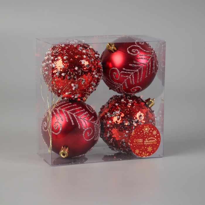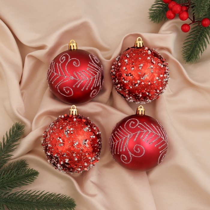 Набор шаров пластик d-8 см, 4 шт "Гарет" красный