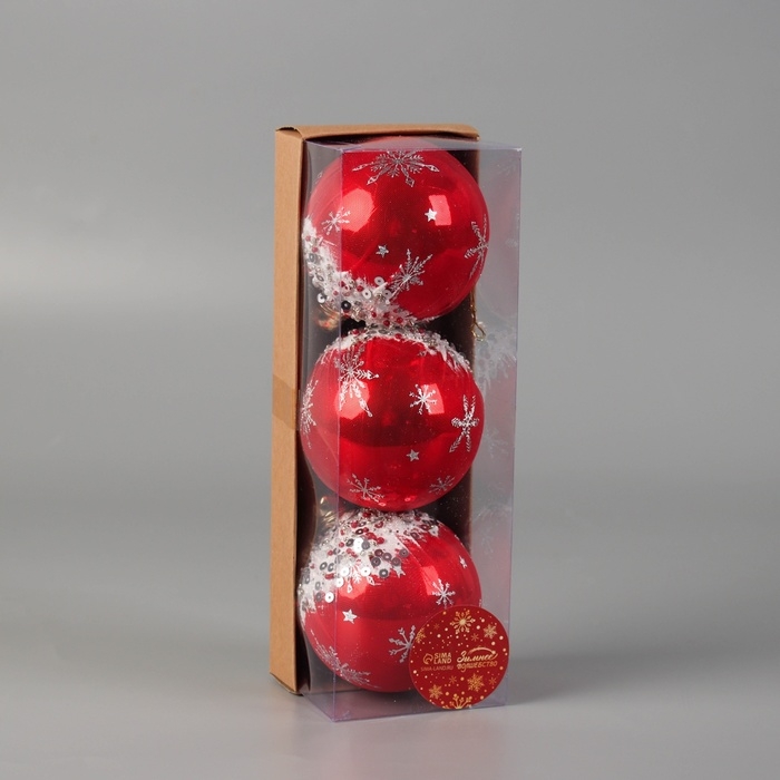Набор шаров пластик d-8 см, 3 шт "Шейн" красный