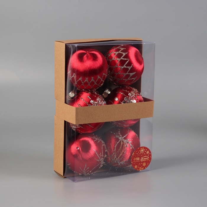 Набор шаров пластик d-8 см, 6 шт "Эйден" красный