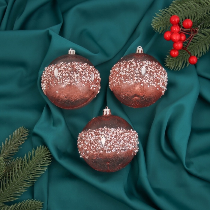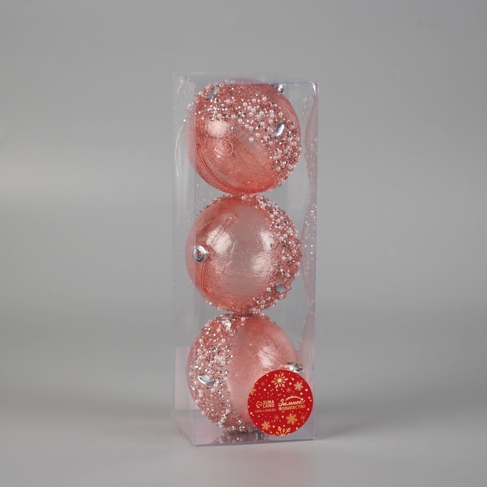 Набор шаров пластик d-8 см, 3 шт "Эйдонс" розовый
