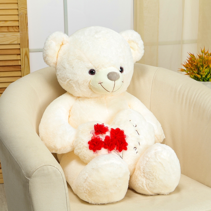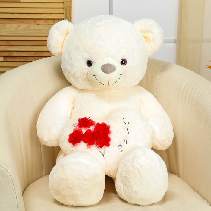 Мягкая игрушка «Мишка», с сердцем, 80 см, цвет белый