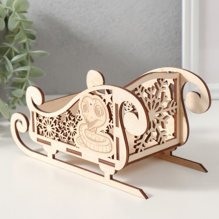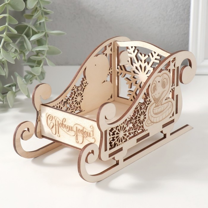 Шкатулка-сани "Змея. Снежинка." 19,5х9,5х10 см
