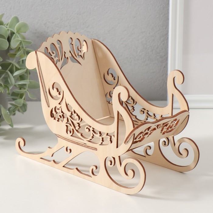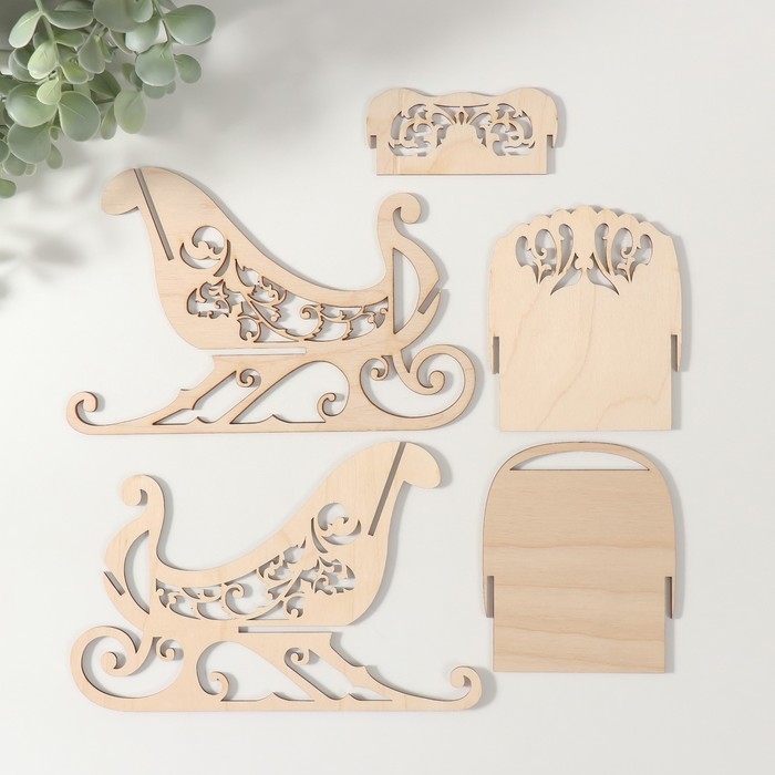 Шкатулка-сани "Узорчатые санки" 21х9х16,5 см (набор 5 деталей)