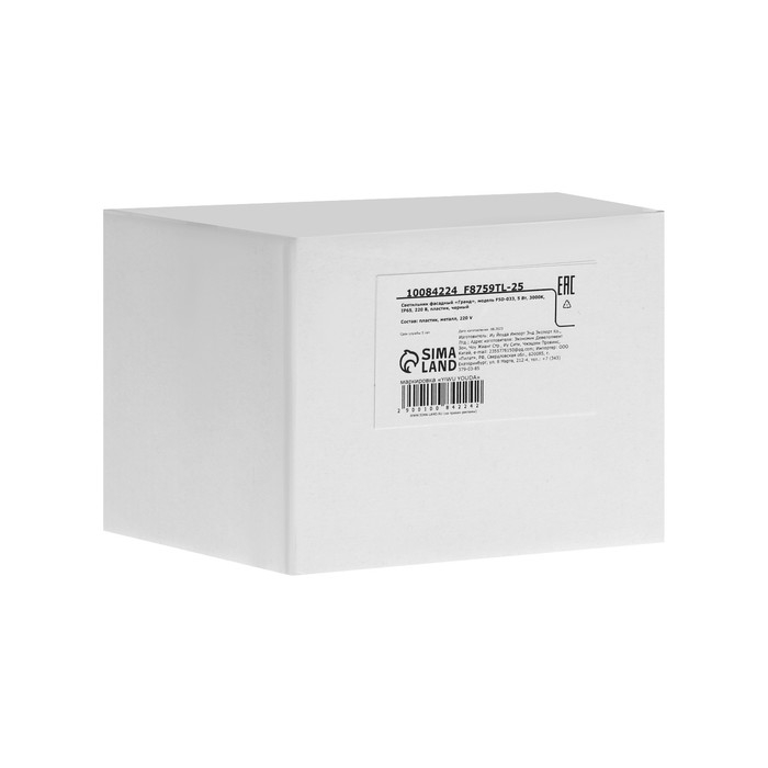 Светильник фасадный «Гранд», FSD-033, 5 Вт, 3000К, IP65, 220 В, пластик, черный