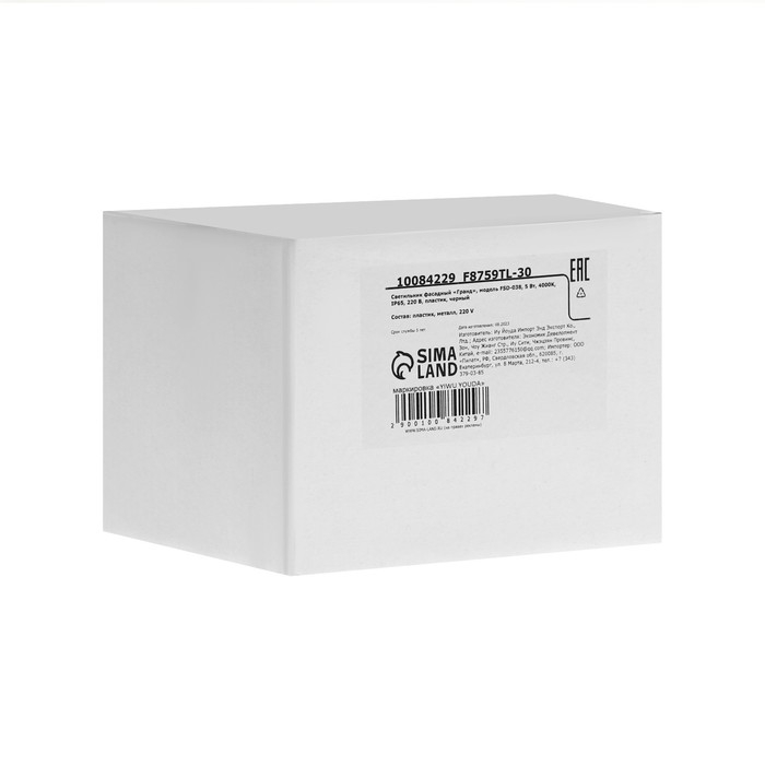Светильник фасадный «Гранд», FSD-038, 5 Вт, 4000К, IP65, 220 В, пластик, черный