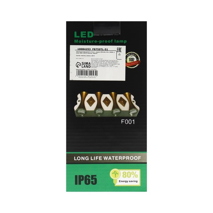 Светильник фасадный «Глосс», FSD-044, 8 Вт, 3000К, 4 луча, IP65, 220 В, пластик, черный