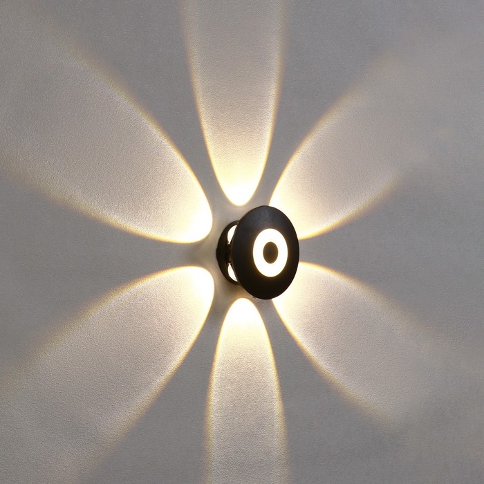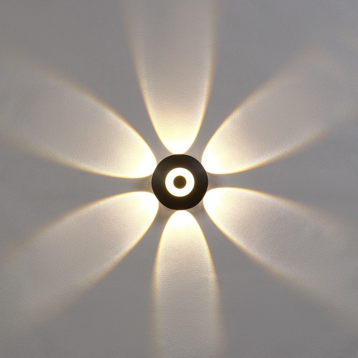 Светильник фасадный «Искра», FSD-053, 8 Вт, 3000К, 6 лучей, IP65, 220 В, пластик, черный
