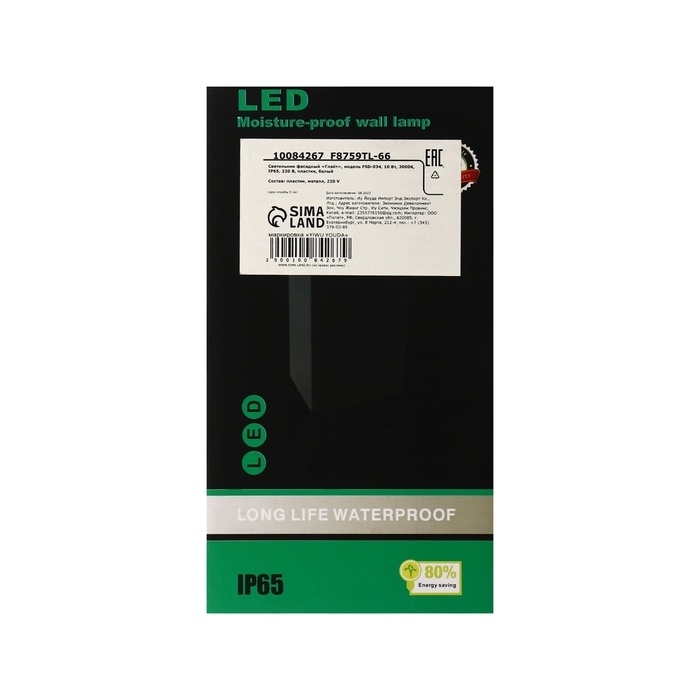 Светильник фасадный «Глайт», FSD-034, 10 Вт, 3000K, IP65, 220 В, пластик, белый