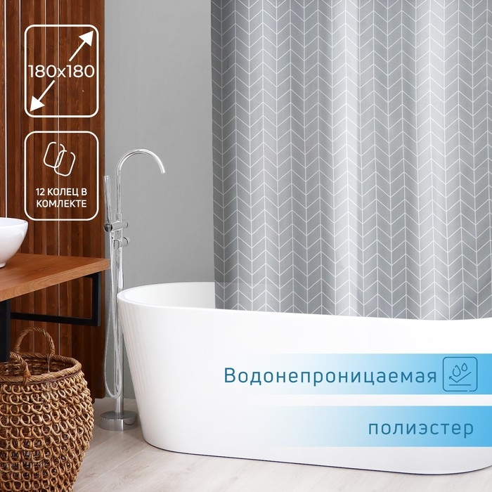 Штора для ванной SAVANNA, 180×180 см, цвет серый