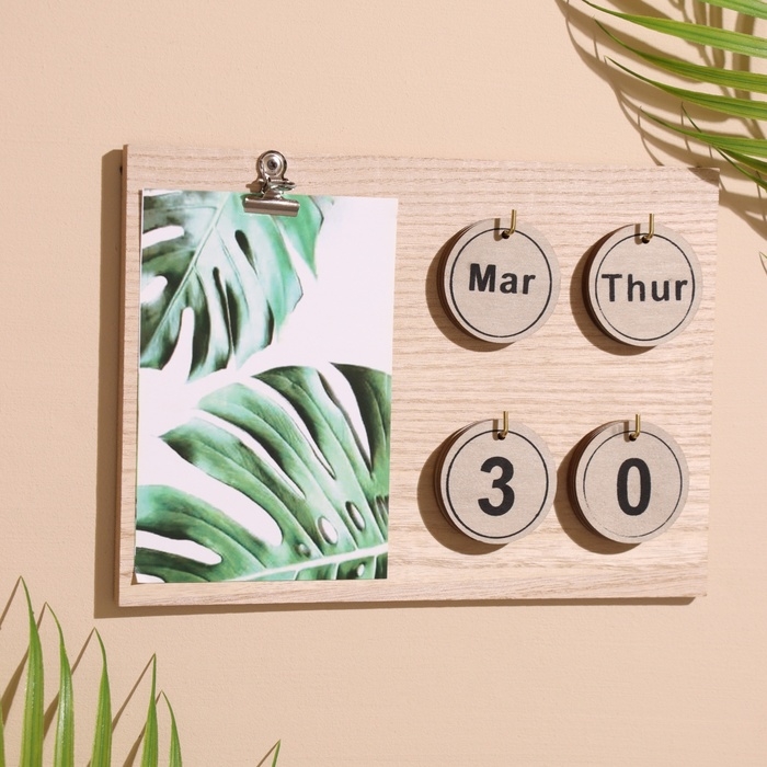 Сувенир вечный календарь с прищепкой, дерево, 23,5х23,5х17 см