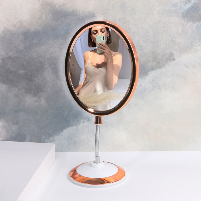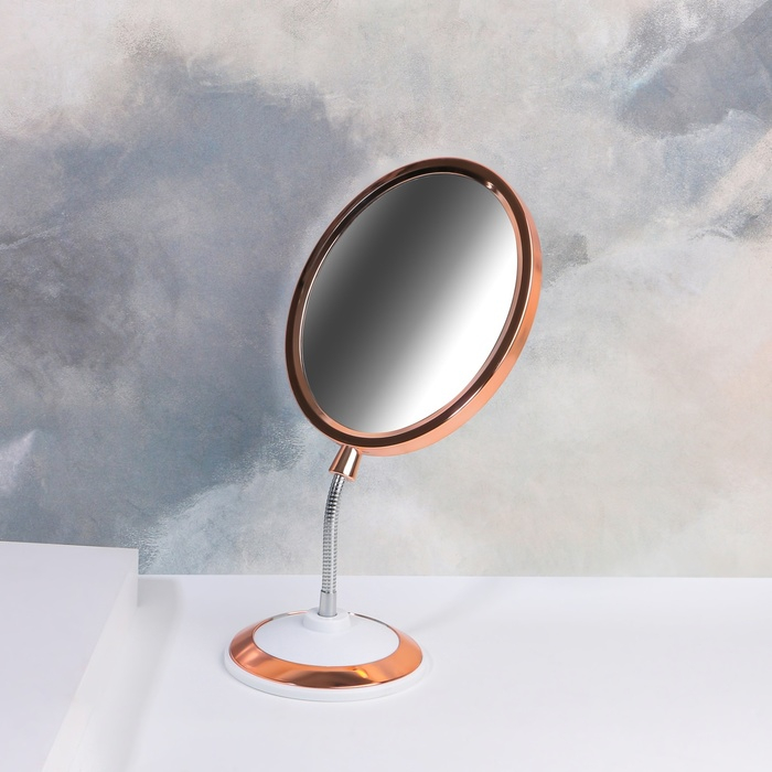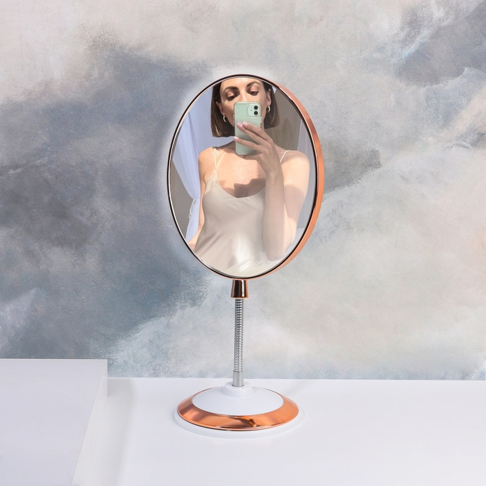 Зеркало на гибкой ножке «Овал», двустороннее, с увеличением, зеркальная поверхность 14 × 17 см, цвет медный/белый