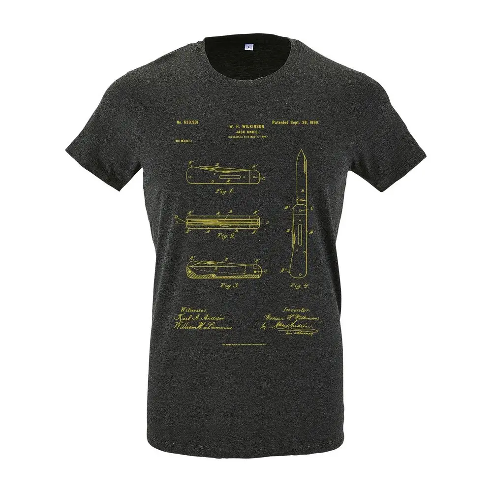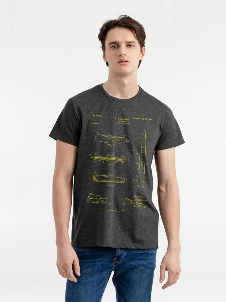 Футболка приталенная Old Patents. Knife, черный меланж, размер S