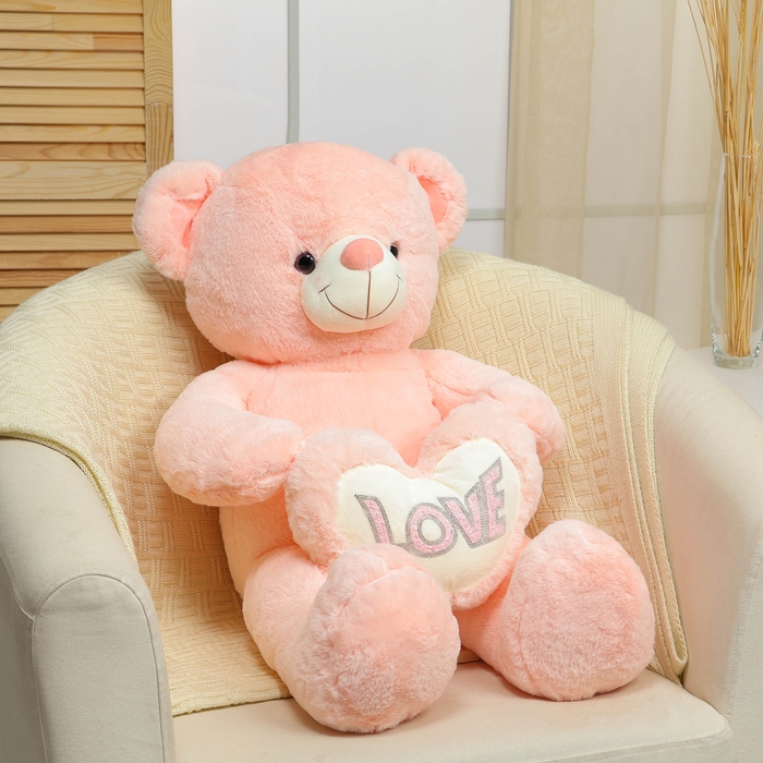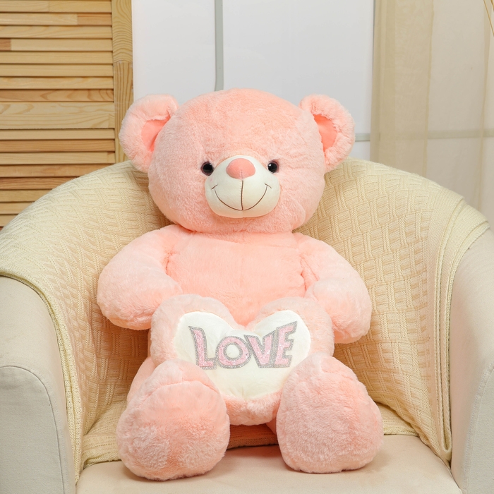 Мягкая игрушка «Мишка», с сердцем, 80 см, цвет розовый