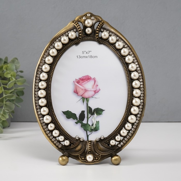 Фоторамка металл, стекло 13х18 см "Нега" латунь, стразы, жемчужины 1,7х17,3х25 см